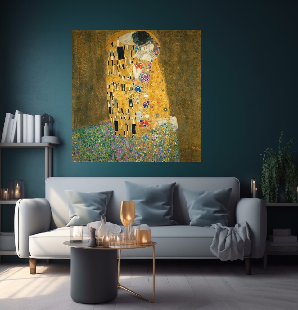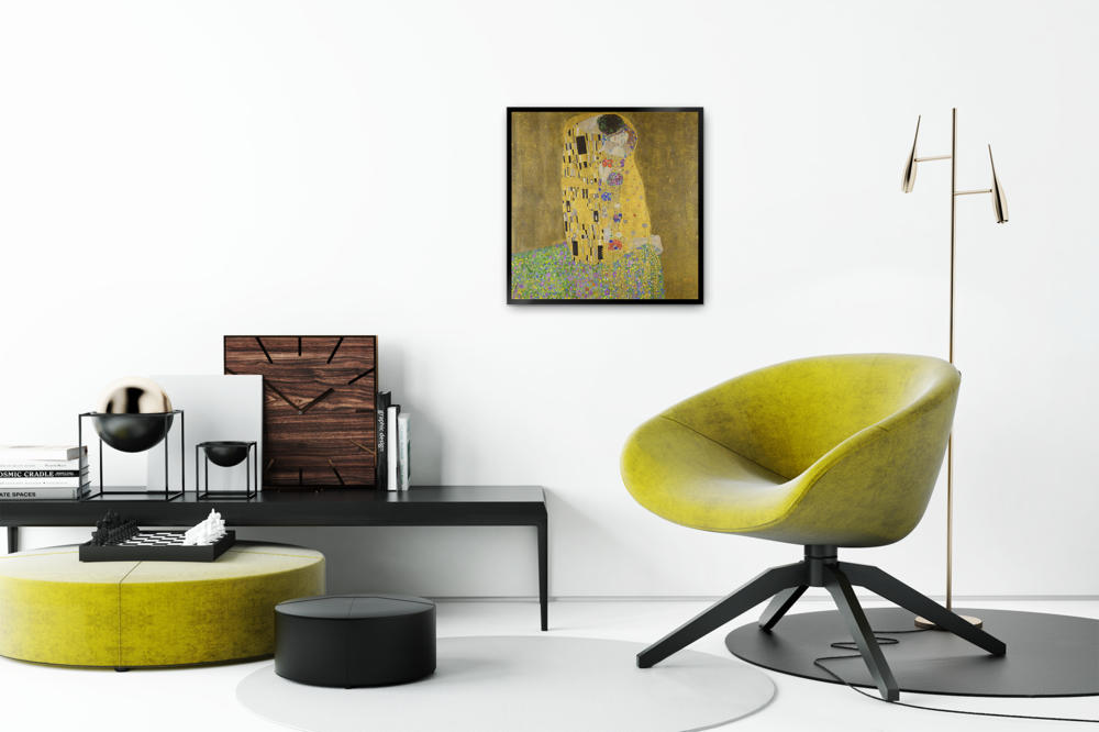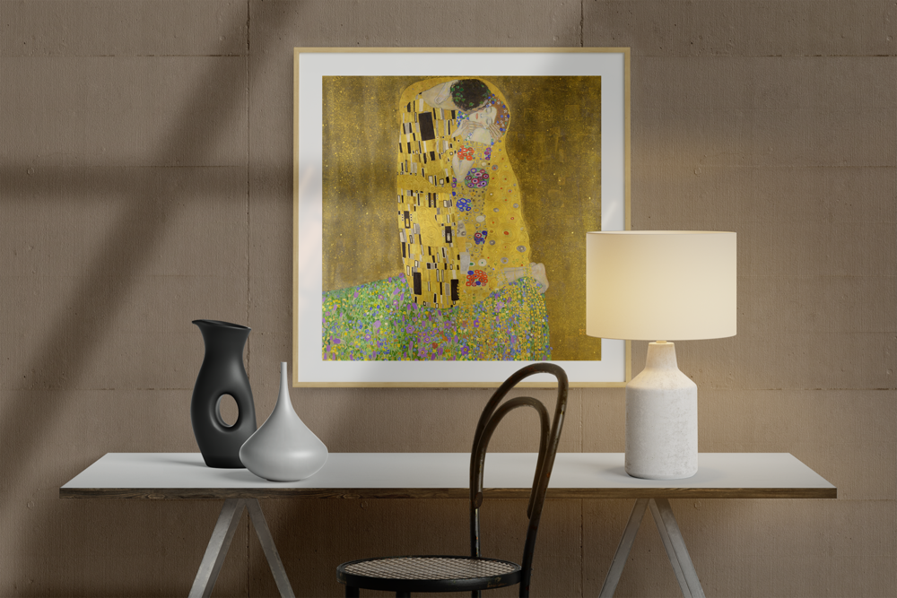 두 남녀의 강렬한 포옹이 애틋합니다. 주변을 가득 메운 황금색과 은색 나뭇잎에 둘러싸인 남녀처럼 공간을 환하게 밝혀주는 그림입니다. 화사함과 따스함을 채우고 싶은 곳에 걸어보세요.