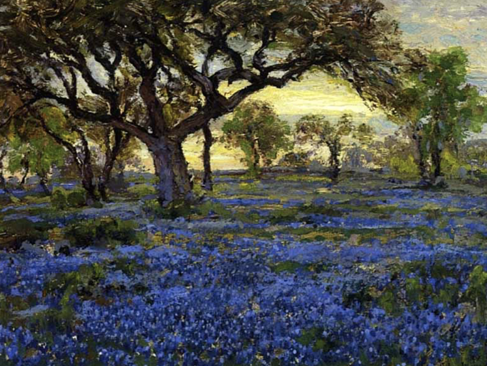 텍사스 서부의 군사 기지에 있는 커다랗고 오래된 참나무와 그 아래 펼쳐진 블루보닛 들판을 그린 작품입니다.