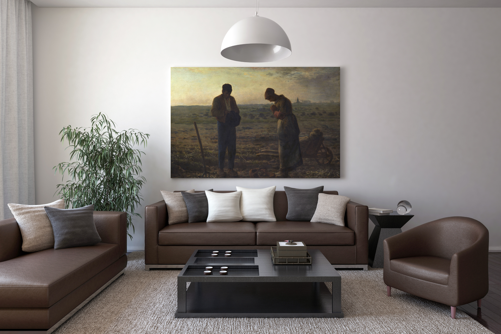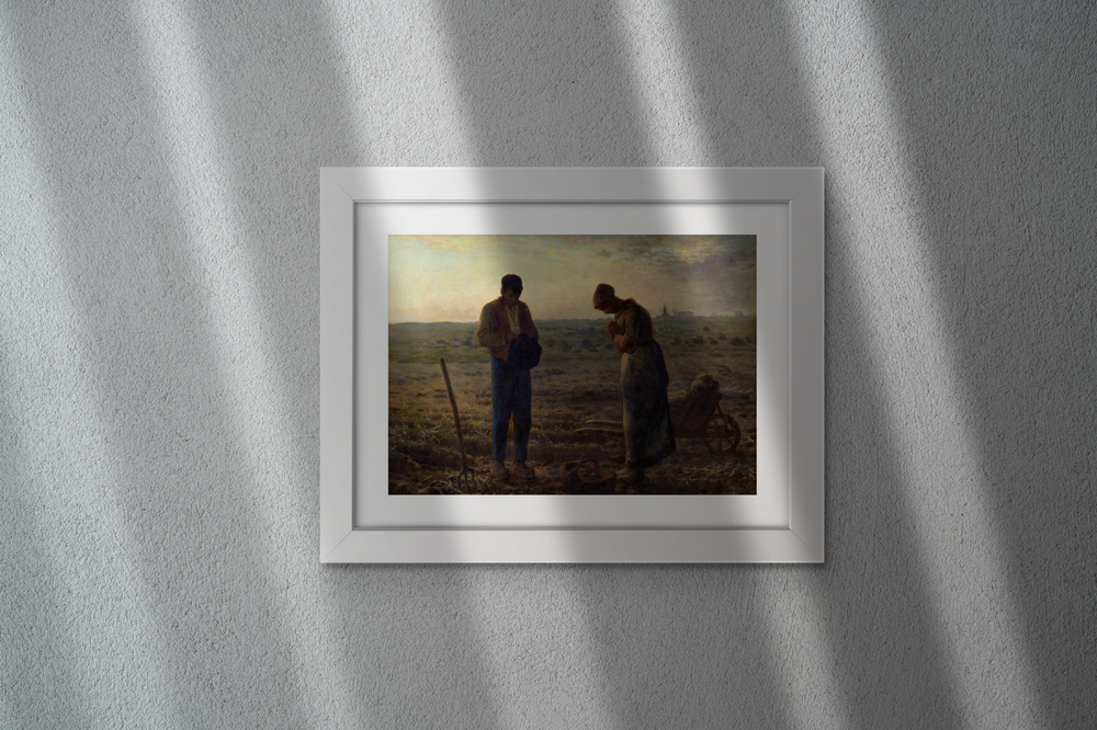 전경의 들판은 광활하고 황량하지만, 가운데데 서서 기도를 올리는 한 쌍의 농부로 인해 성스러움으로 채워집니다.이들의 고요하고 엄숙한 분위기는 기념비적이기까지 합니다.
