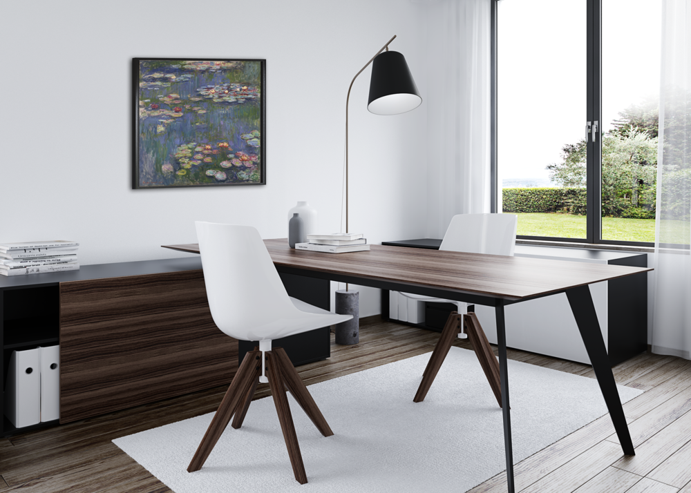 푸르스름한 물과 그 위에 반사된 빛은 마치 바로 앞에서 수련이 둥둥 떠다니는 연못을 보는 듯한 느낌을 줍니다. 따뜻하고 안정적인 색감 덕에 마음이 가라앉네요. 조용하고 잔잔한 하루를 다짐할 이 그림을 바라보세요. 나를 괴롭히는 두려움은 가라앉고 편안한 마음을 되찾을 수 있을 거에요.