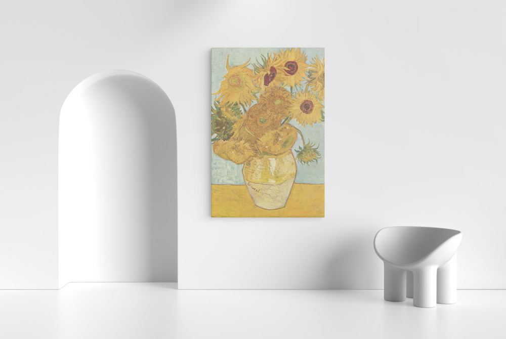 햇빛의 강렬한 색채를 좋아했던 빈센트 반 고흐, 단순하지만 당당하게 꽃잎을 펼치고 있는 해바라기는 그의 기세를 상징하는 것 같습니다. 해바라기 화분이 프레임 정 가운데에 가만히 놓여있어, 바라보고 있으면 마음까지 편안해집니다. 해바라기의 화사한 노란빛은 프레임을 넘어서까지 공간을 온통 금빛으로 채우는 듯 합니다.